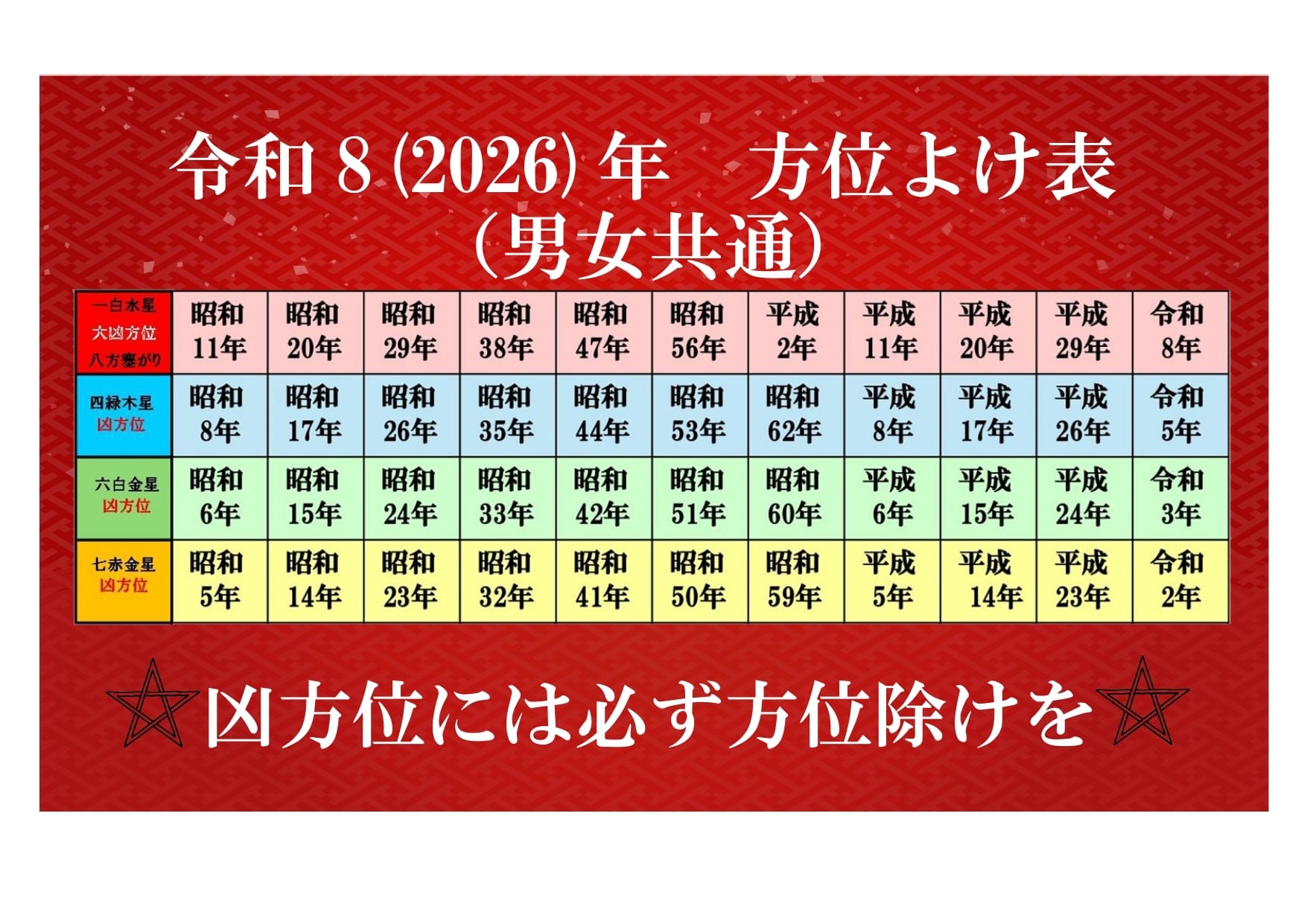 八方除け御守り 八方からの厄難を祓い、 災いを避けて平安と開運の道へ導く 八方除けの御守りです。 方位の厄が気になる方や、節目の年にもおすすめです。