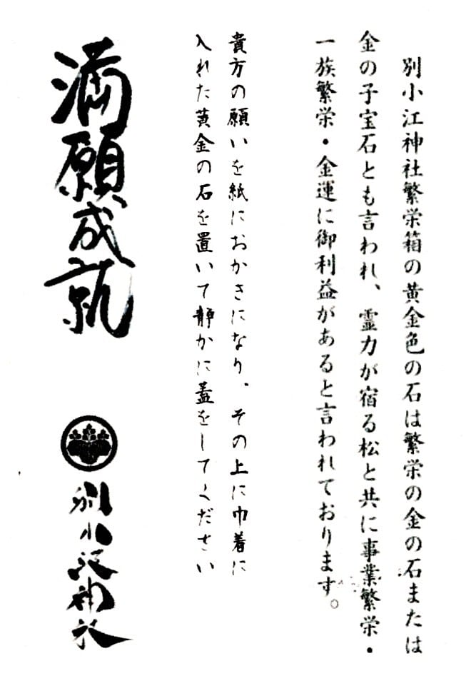 繁栄の象徴とされる黄金の石をお納めしております。