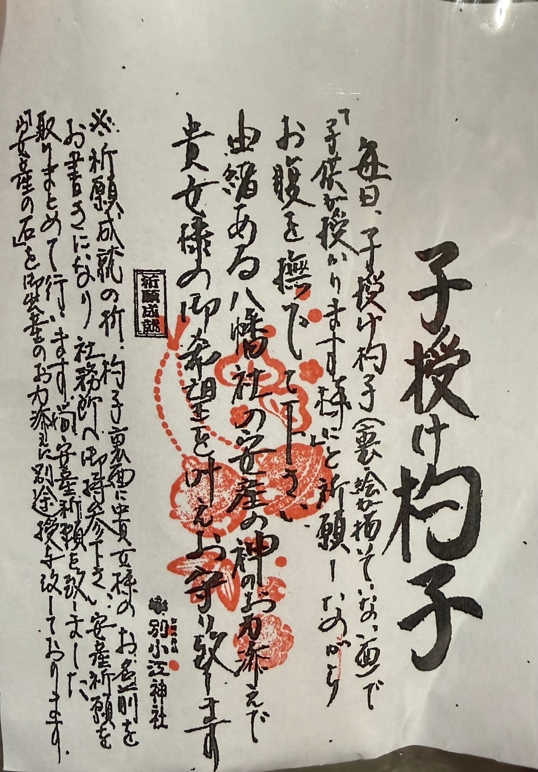由緒ある八幡社の安産の神様の御神徳をお授けし、ご奉製した御神縁の品です。