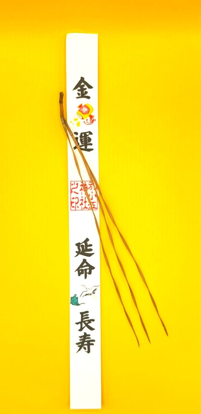 別小江神社の境内に自生する、全国的にも珍しい三葉の松をお分けした御守りです。